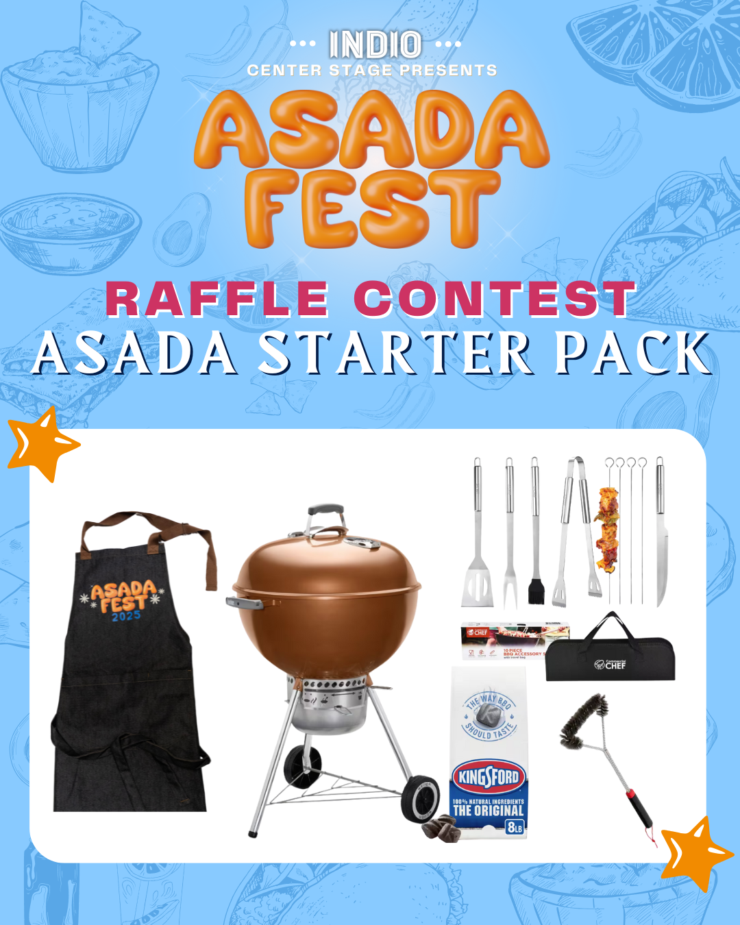 As part of the festivities, we’ll be hosting a special raffle featuring an "Asada Starter Pack" — including a grill, an Asada Fest-branded apron, grill kit, Asada Fest merchandise, and a $100 Vallarta Supermarket gift card!