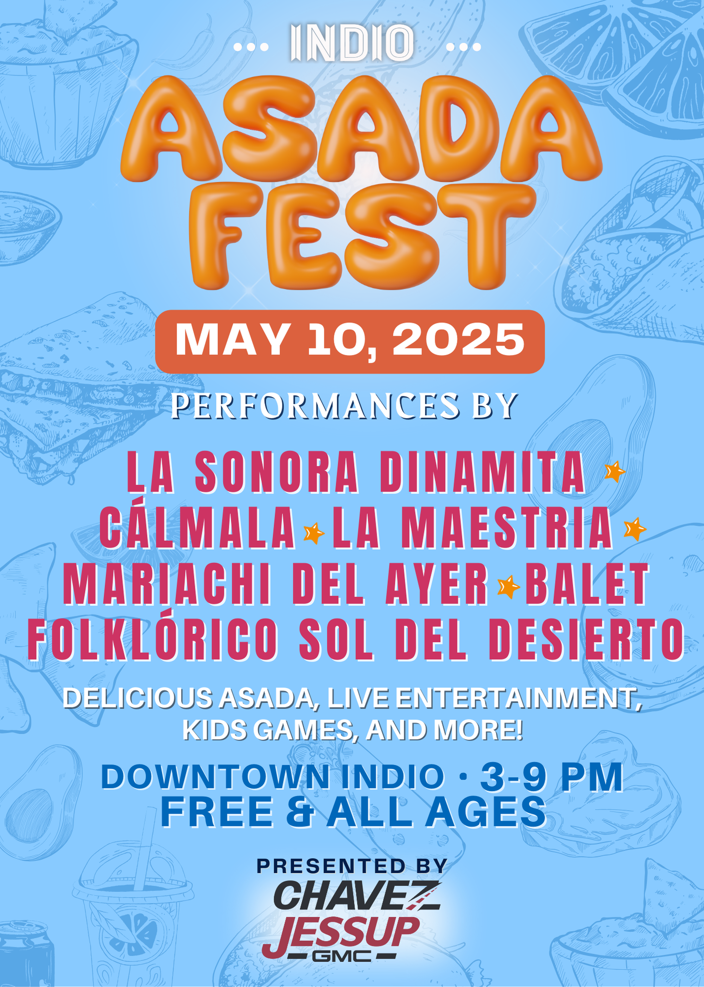 Get ready for the first-ever Asada Fest! Join us on Saturday, May 10th from 3 p.m. to 9 p.m. in Downtown Indio for a day full of great food and fun. Dig into Asada from local favorites like Tacos A Mar O Tierra, Outside The Masa, Elowtitos, and plenty more!🔥
